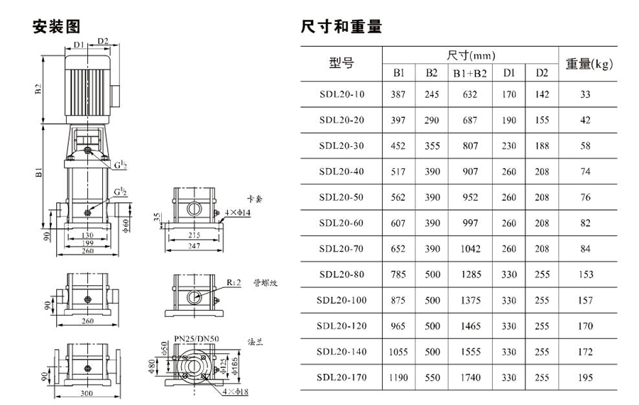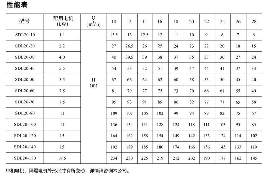 南元SDL20/SDLT20立式多級離心泵有不同的泵規格和不同級數,以滿足所需的流量和壓力。