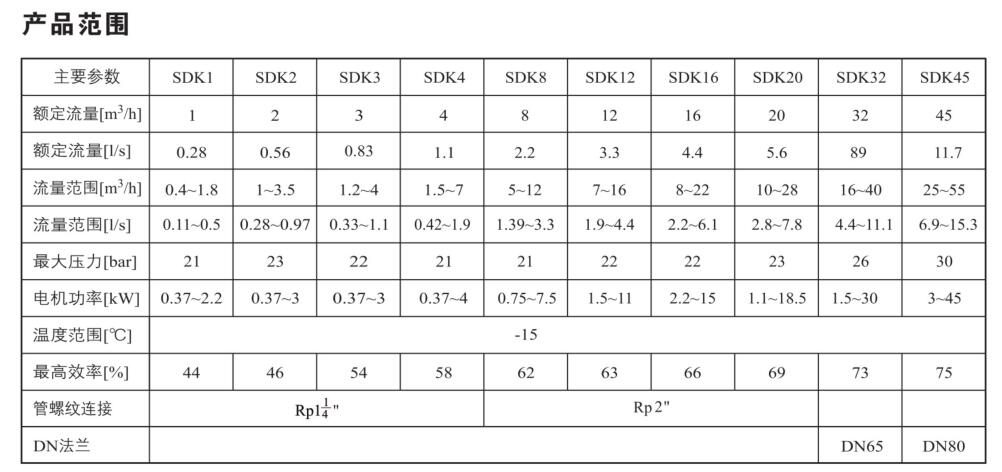 用于輸送機(jī)床冷卻液、潤滑液、冷 凝水輸送、工業(yè)清洗設(shè)備和其他適合侵入式泵使用的場合。SDK4適用于輕度腐蝕性液體,SDKT4適用于無腐蝕性液體。