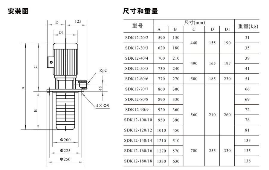 SDK12/SDKT12為配用標準電機的非自吸立式多級離心泵,電機軸和泵軸用聯(lián)軸器直接聯(lián)接的結構。為滿足水槽或容器的安裝深度,可安裝空套的腔體來改變泵本身的侵入 深度。